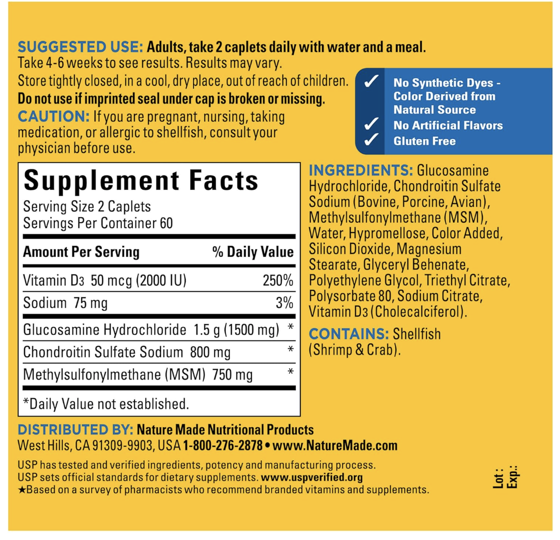 Nature Made Glucosamine Chondroitin Complex with MSM – Chai 120 viên nén (60 ngày dùng)